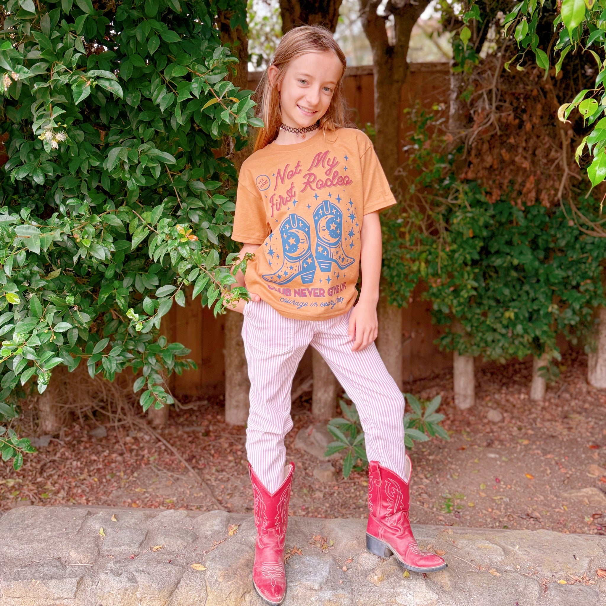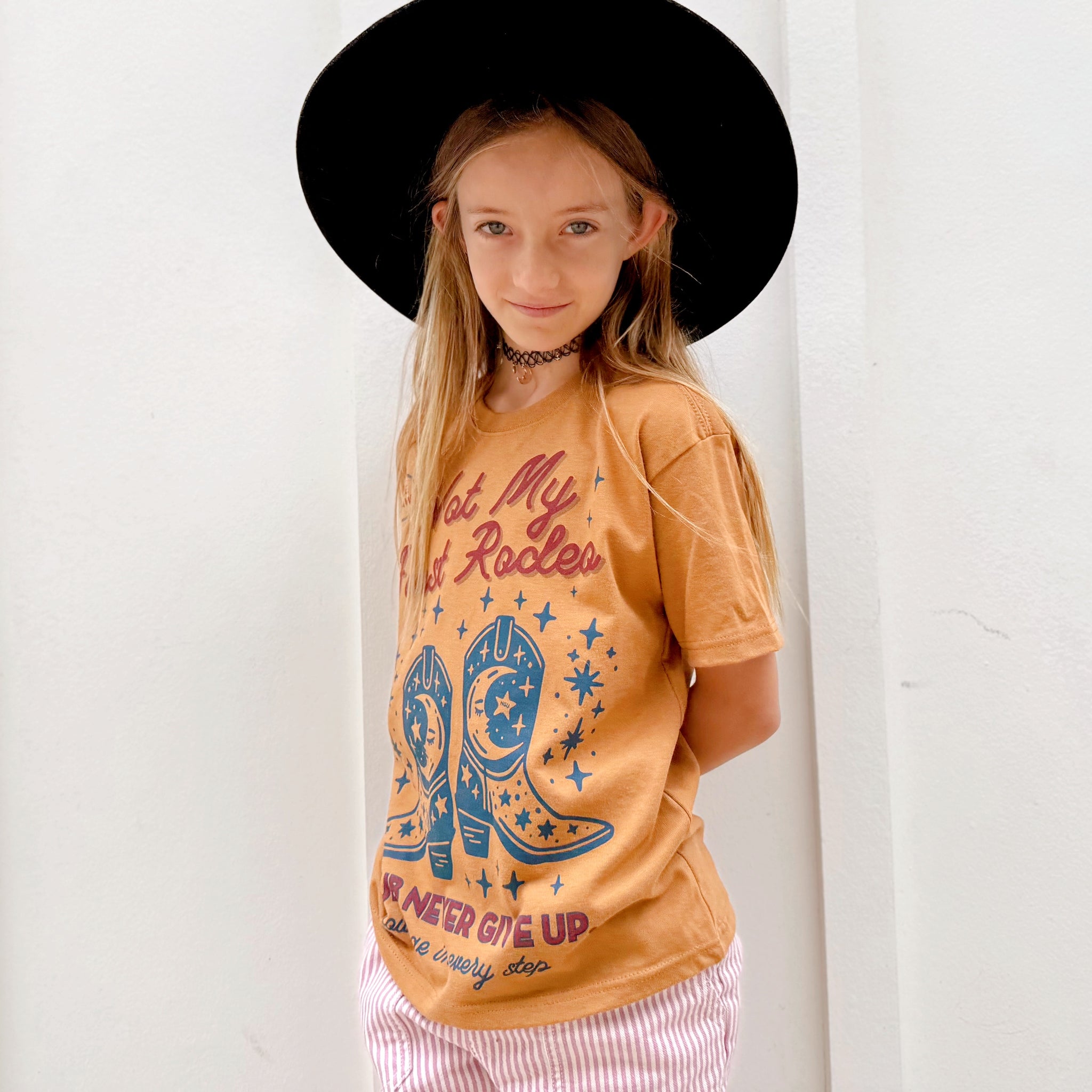 Courage in every step. Yeehaw and ride on — this tee’s for the little ones who know that strength comes in many forms. With bold western flair and a wink of starlit grit, it reminds us: Whether you use wheels, words, signs, tech, or tenacity — Being brave means being yourself!