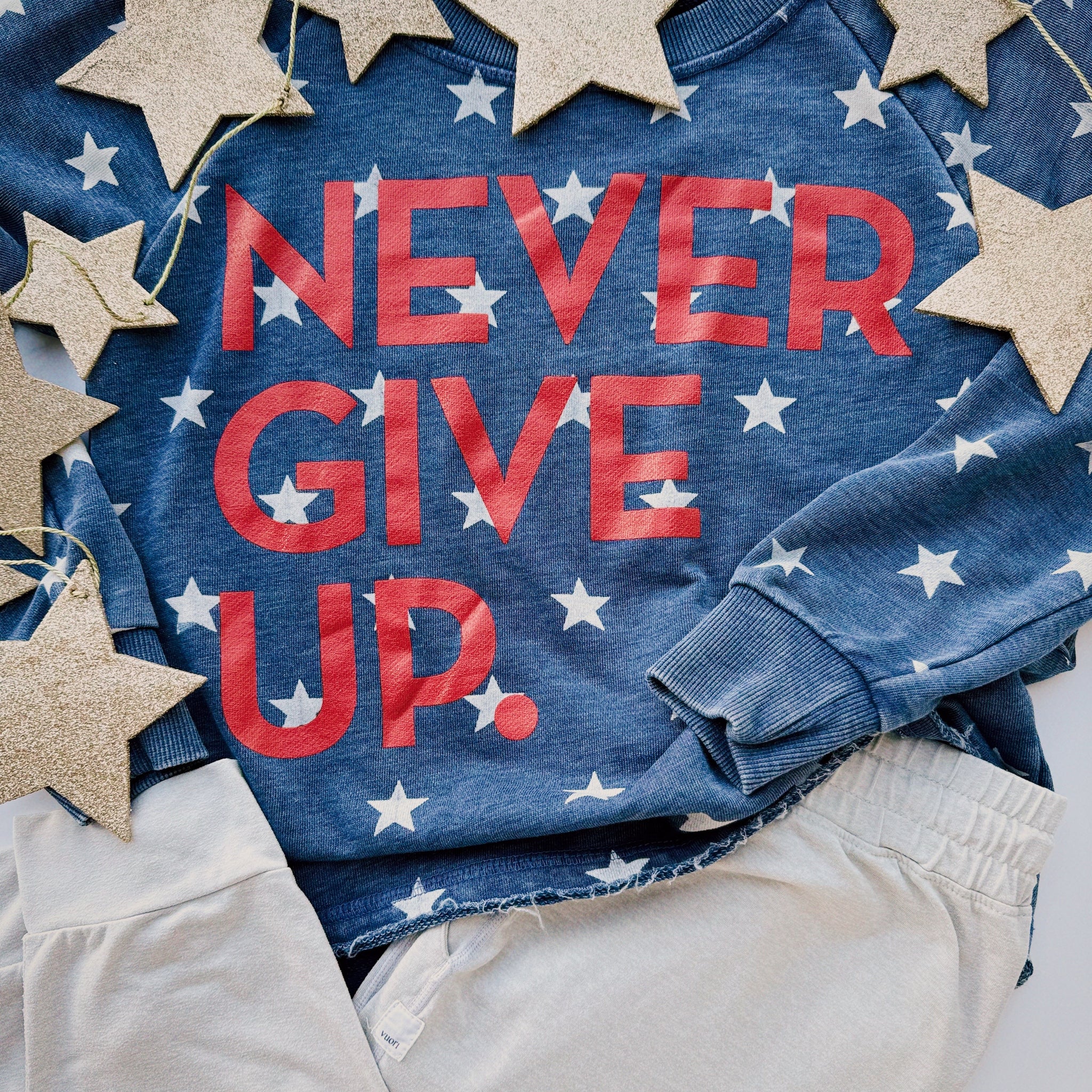 With a bold red NEVER GIVE UP. front print and scattered star pattern, Starry Resolve is made for the quiet fighters, the everyday dreamers, and the ones who show up even when it’s hard.
