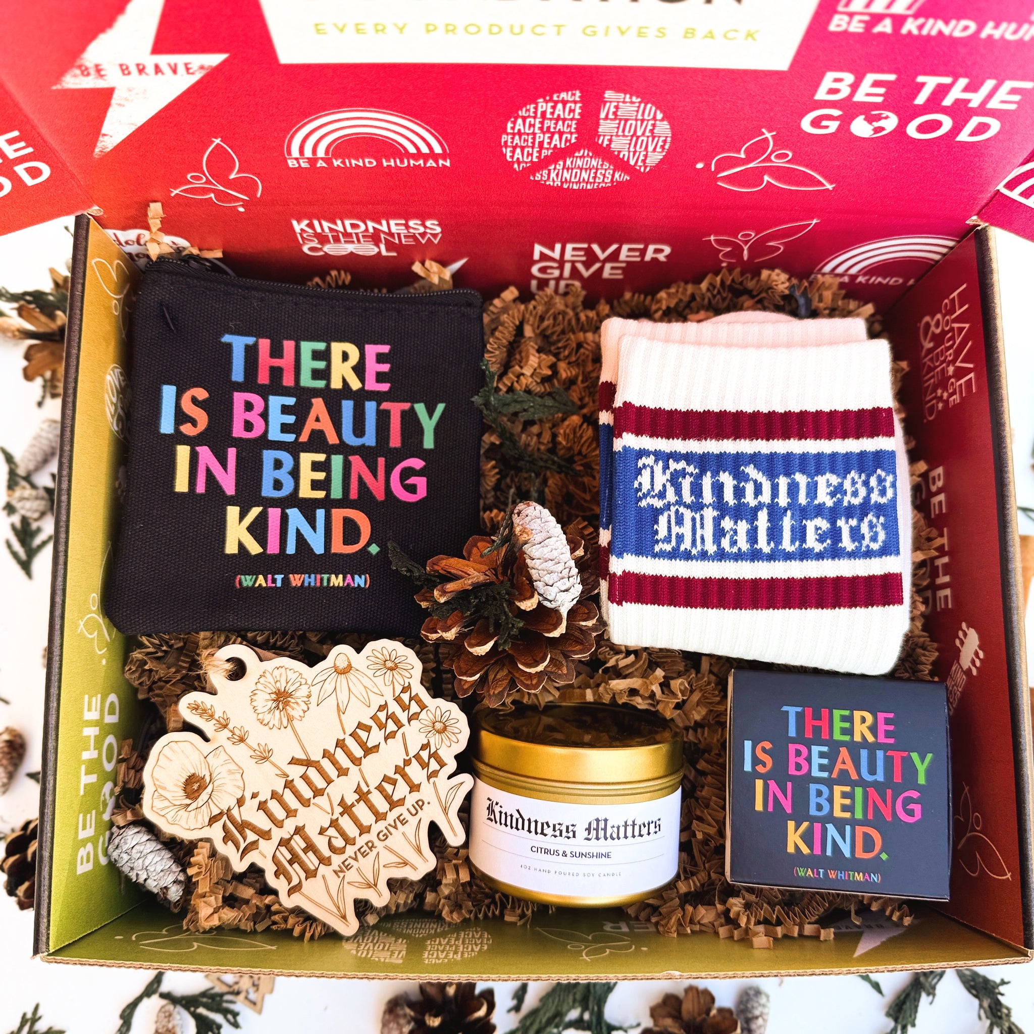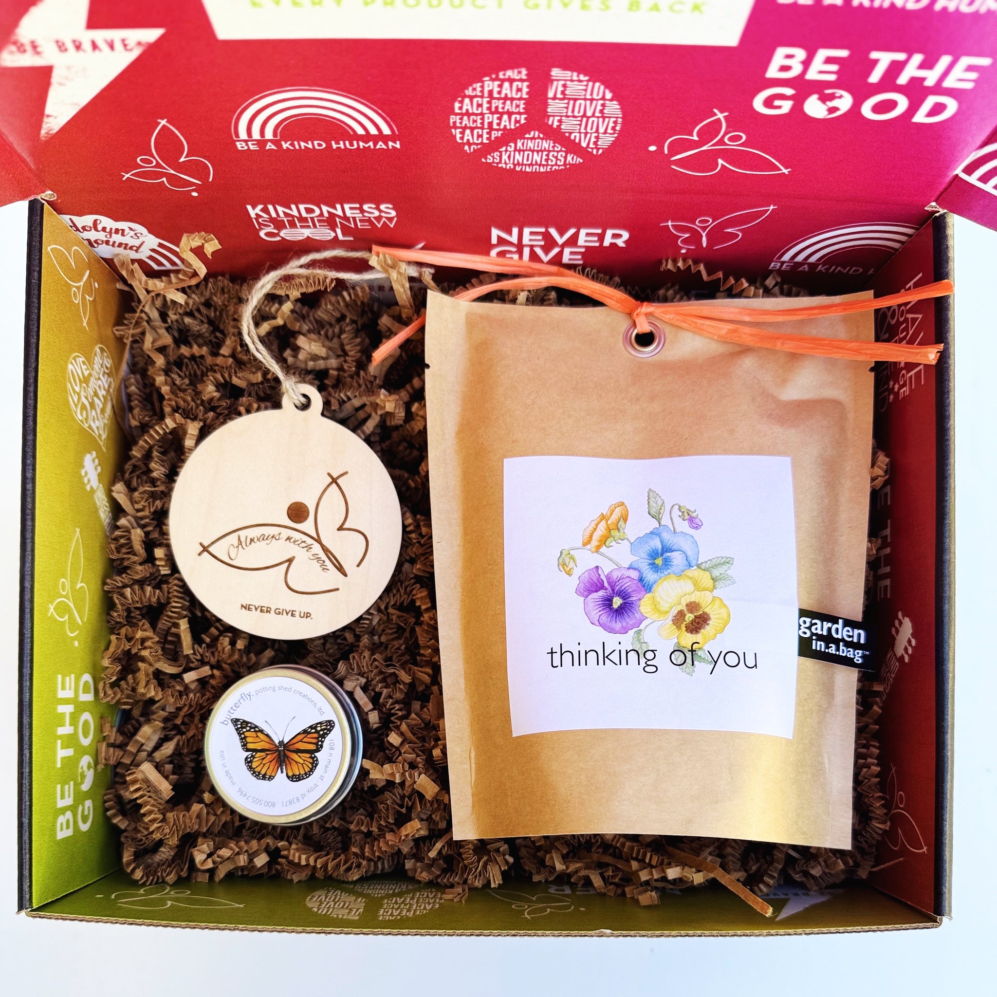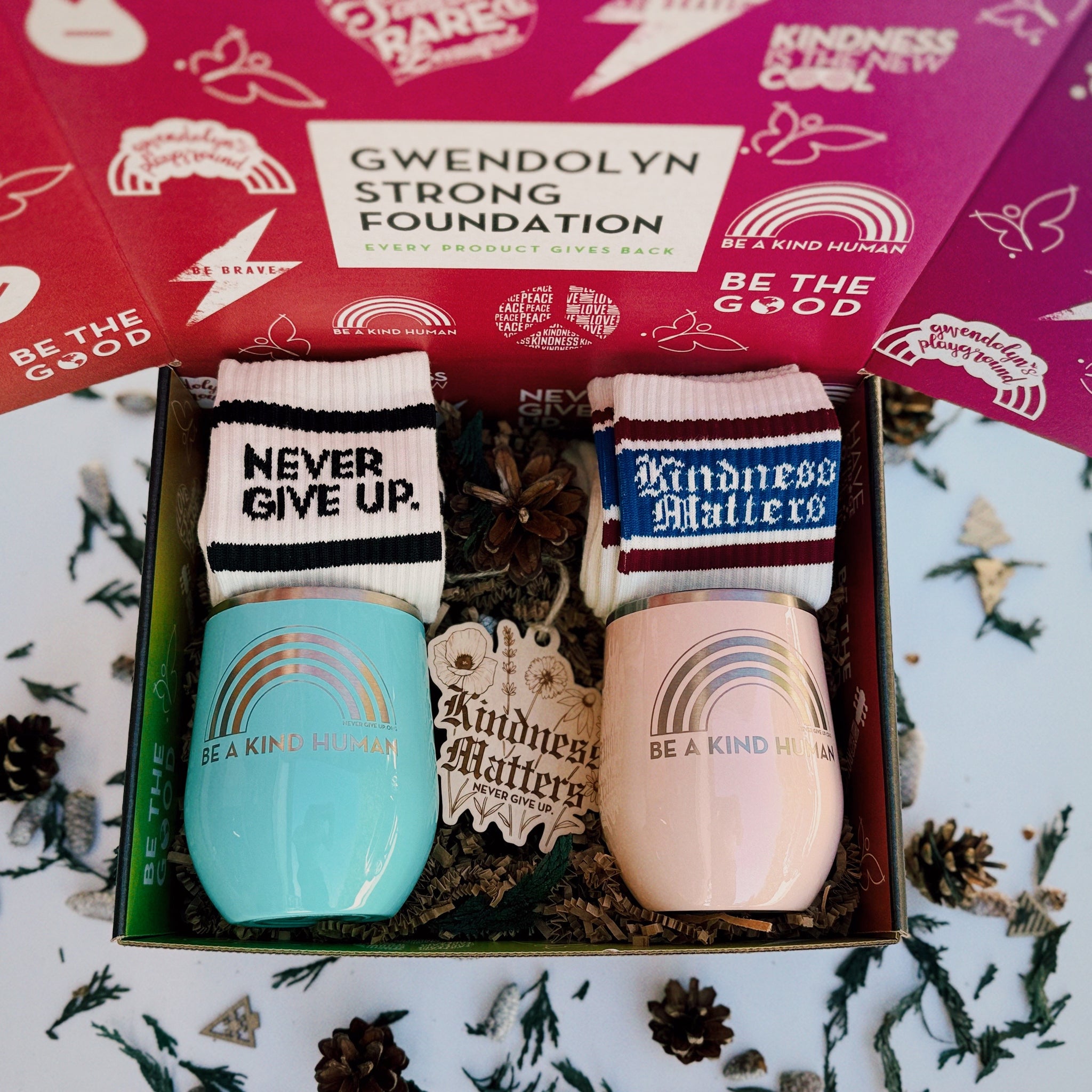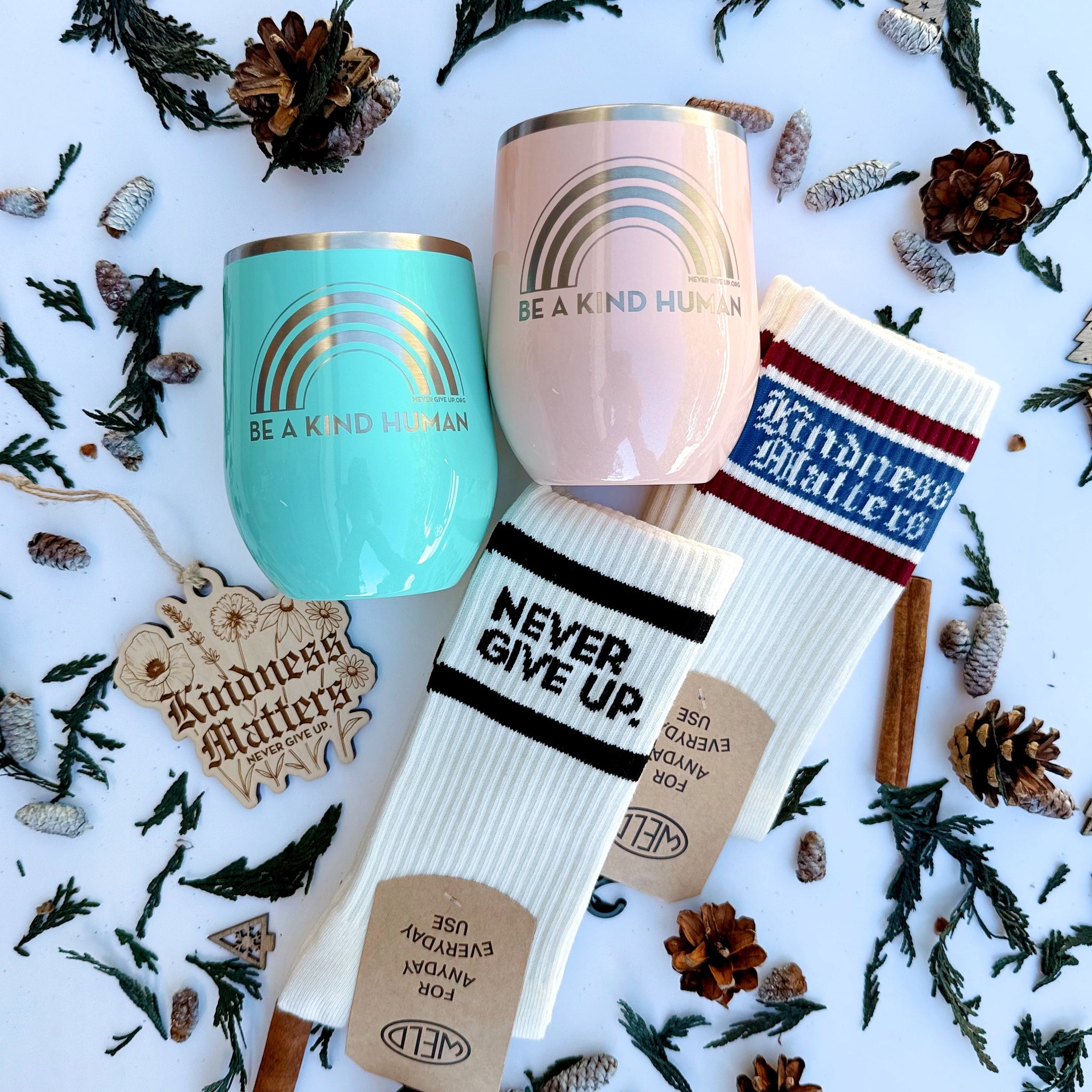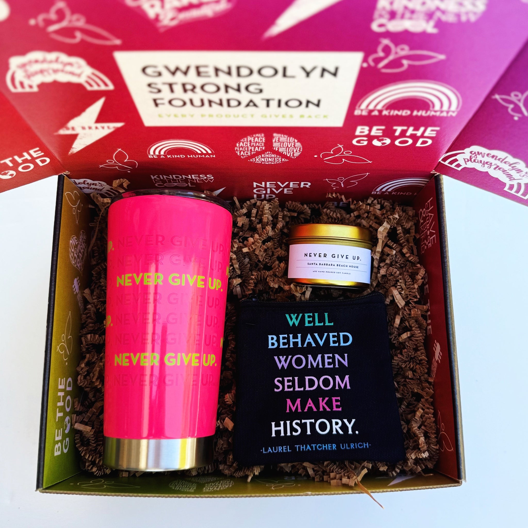 We created these boxes to make it easier to send a little more “NEVER GIVE UP.” into the world — thoughtful, purpose-filled gifts, built for each recipient and shipped with love right to their door.